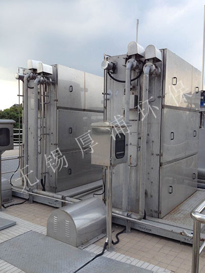 3台格柵的電氣係統設置在1台電氣控製櫃內,該電氣控製櫃內包括了對高排水型壓榨機及中、高壓衝洗水泵的控製,並可對其進行單獨或聯動控製。聯動控製時,格柵除汙機與高排水螺旋壓榨機及衝洗水泵可同時啟停;除汙機的電氣控製具有手動、自動、手動自動切換、急停、切斷、報警等功能。手動用於除汙機的現場短時間控製運行。本機在自動狀態下運行時,通過觸摸屏在0~24小時內設定除汙機的‘開—停’工作周期,當格柵機處於停止時間周期時,如果柵前水位超過設定值,格柵機自動啟動運行。內進流式網板式格柵除汙機的電氣控製櫃留有供遠方集中(PLC)控製的接口。內進流式網板式格柵除汙機在無人看管的情況下,將操作旋鈕旋至自動位,除汙機將在指定的工作方式下自動運行。